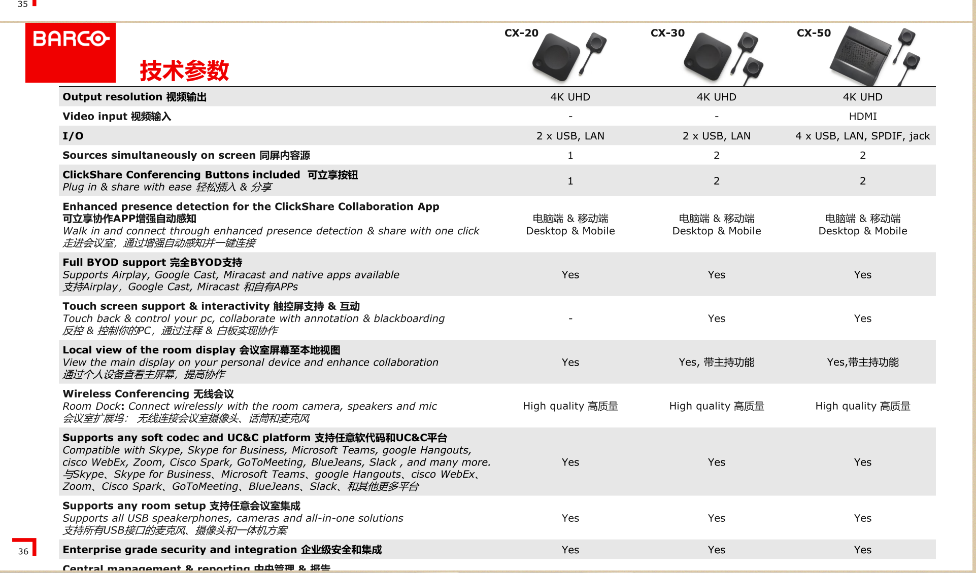 借助可立享 CX-50,您可以實現“自帶會議”,并決定要以何種方式開展協作。 它提供了用于提高中型到大型會議室中的協作效率的一系列功能,這包括標注*(讓與會者為幻燈片添加評論)、白板功能*(讓詳細信息可以實時更新)和主持人(讓團隊成員控制顯示在會議屏幕上的內容,以及通過可立享 CX-50 觸控支持功能完成觸摸屏控制)。 使用可立享會議按鈕和可立享協作應用程序(適用于 PC、Mac 和移動設備)提供直觀、一致的用戶體驗。