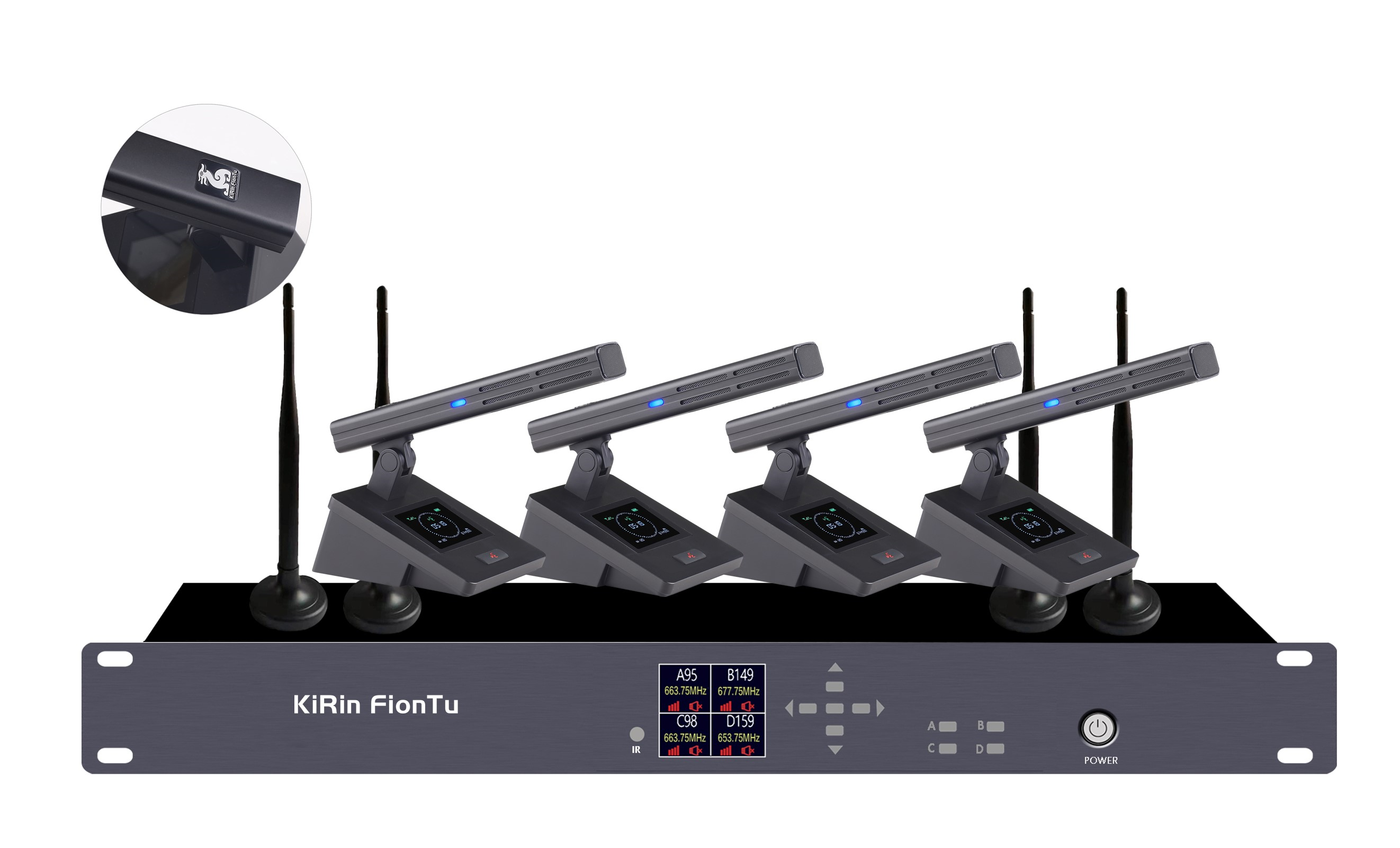 1)接收機采用1.8寸TFT彩色顯示屏,可顯示四個通道信道、電池電量、頻率、音量、音頻電平、信號強度、發(fā)言狀態(tài)等內(nèi)容一目了然。