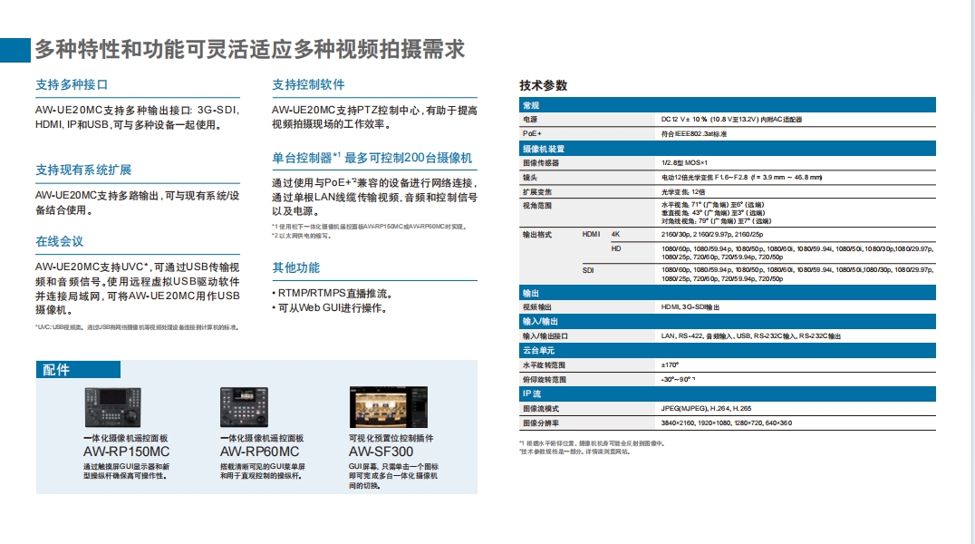 圖像輸出接口:HDMI,3G-SDI,RJ45(IP),USB