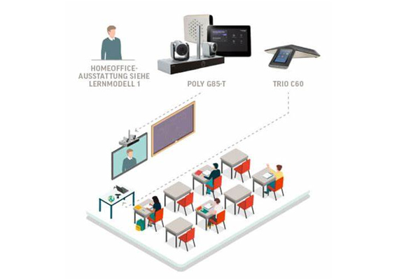 G85-T 配備 Poly EagleEye Director II 和兩個 Poly EagleEye IV 12X 攝像頭、Poly GC8 觸摸屏和 Lenovo ThinkSmart Edition Tiny,以及用于閃電般快速連接的 10 m 光纖電纜。