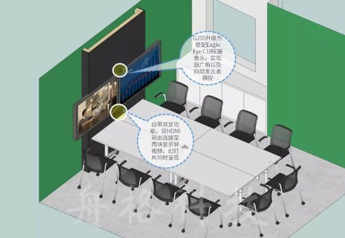 G200同時自帶雙顯功能,用戶可以通過兩個HDMI接口分別接入兩臺顯示設(shè)備。可以進行多種設(shè)置,例如一臺顯示本段畫面,一臺顯示遠端畫面;或者一臺顯示遠端畫面,一端顯示幻燈片。