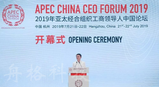 2019年APEC工商領導人中國論壇由中國國際貿易促進委員會、中國國際商會、APEC工商咨詢理事會等共同主辦,圍繞“創造新產業繁榮的時代”,探索經濟與創新發展的動力與路徑。峰會現場,阿里巴巴董事局主席馬云提出兩點呼吁:進一步推動全球化、推動數字經濟發展。