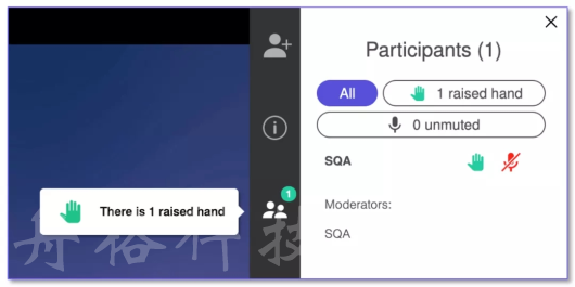 舉手允許參與者與會議組織者或主持人進行交流,而無需指揮會議記錄。只需輕按一下按鈕,您的虛擬手就會抬起,并且出現一條通知,表明您有要解決的問題或評論。然后,演講者可以根據自己的判斷做出回應-也許是實時的,但很可能是在一個更適當的時刻,而不是在提出重要觀點時。